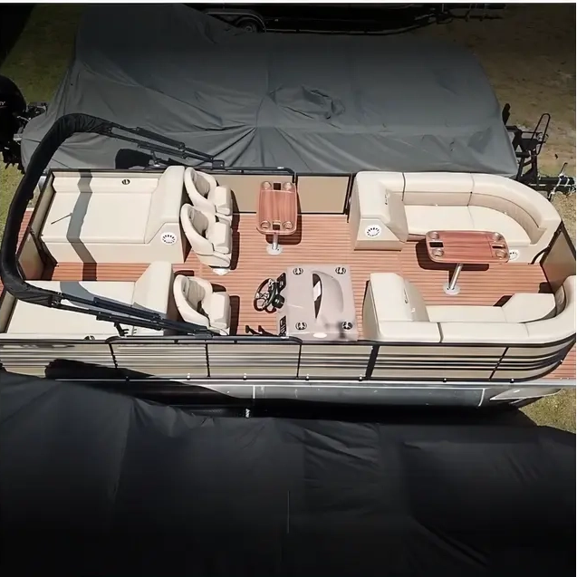Dining tables are another popular choice, turning the pontoon into a floating dining room. Removable or foldable tables make it easy to set up a meal, play cards, or enjoy snacks while cruising. For higher-end models, integrated bar setups with stools and beverage coolers are available, appealing to those who enjoy entertaining guests on the water. This option is particularly attractive for customers who see their pontoon as a social hub for parties and gatherings.
